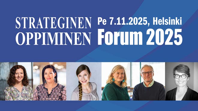Strateginen oppiminen on tämän päivän strategista johtajuutta. Se on työyhteisösi menestyksen lähde ja hyvän elämän perusta. Sen avulla rakennamme inhimillisiä ja aikaansaavia työyhteisöjä.