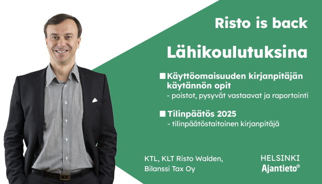 UUTTA! Käyttöomaisuuden kirjanpitäjän käytännön opit – poistot, pysyvät vastaavat ja raportointi, ma 27.10.2025 klo 9 – 16, HELSINKI, lähikoulutus