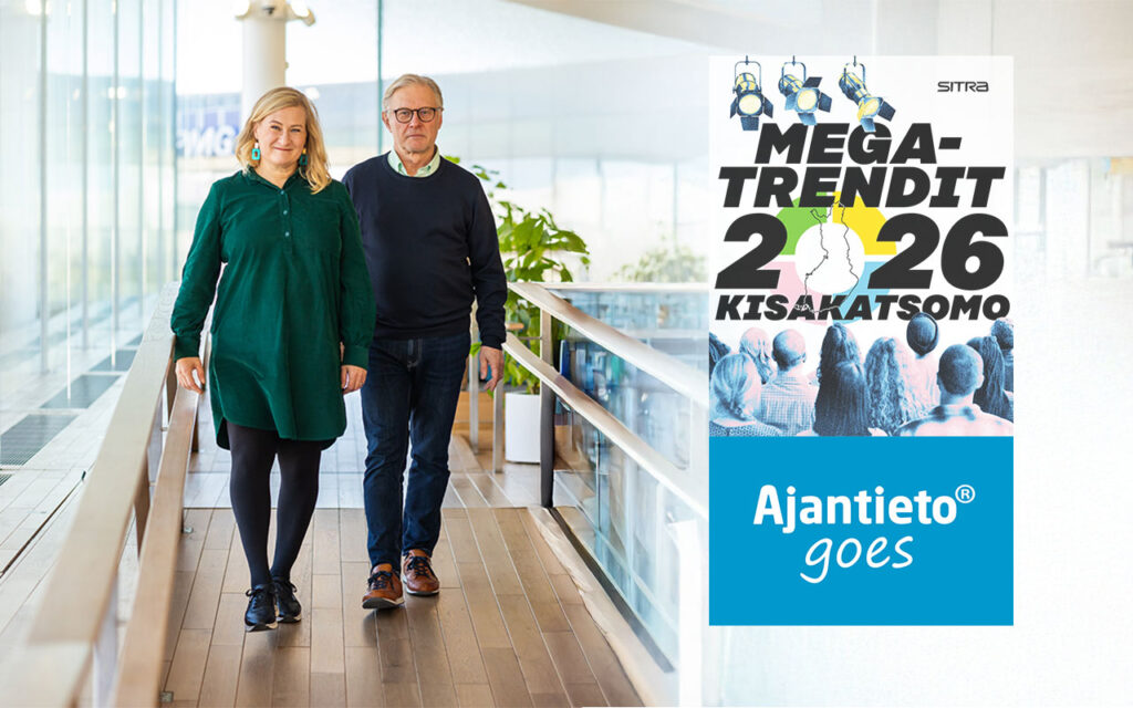 Ajantieto Goes – Megatrendit 2026 -etäkisakatsomo pidettiin 15. tammikuuta 2026, heti Sitran Megatrendit 2026 verkkolähetyksen jälkeen. Ajantiedon tapahtuma oli suunnattu taloushallinnon asiantuntijoille. Tilaisuuden tarkoituksena oli herättää keskustelua, avartaa ajattelua ja pohtia megatrendien merkitystä taloushallinnossa sekä tarjota osallistujille työkaluja tulevaisuuden hahmottamiseen. Ajantiedon kisakatsomon alustajina toimivat Jaana ja Juha Koskinen.