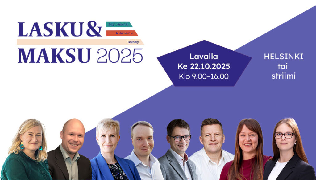 Lasku&Maksu 2025 kokoaa lokakuussa taloushallinnon asiantuntijat keskustelemaan alan töitä koskevista suurista muutoksista. Digitaalisuus, automaatio ja tekoäly eivät ole enää pelkkiä kehityssuuntia, vaan ne muovaavat jo taloushallinnon toimintalogiikkaa. Kansainvälinen Peppol-sanomaliikenne, Eurooppanormin mukaiset verkkolaskut, reaaliaikainen maksaminen, digitaaliset yrityslompakot, tulliuudistus ja tekoäly ohjaavat arjen käytäntöjä ja avaavat samalla uusia mahdollisuuksia talousdatan hyödyntämiseen liiketoiminnan tukena.